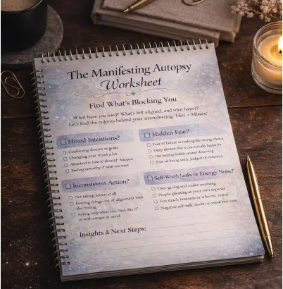 Manifesting Autopsy Worksheet A diagnostic process to find real blocks like mixed intentions, fear, or self worth leaks, so you can finally clear what is in the way.